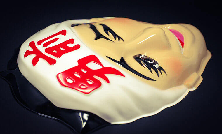 お面の着色方法には、昔ながらの「塗装」と最近徐々に増えてきた「印刷合わせ」があります。