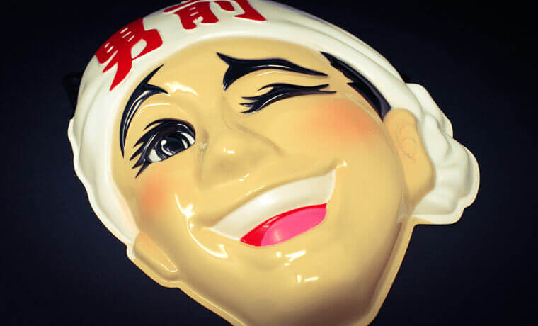 このケンちゃんのお面は当社にとっても大変思い出深いものとなり、後日、男前豆腐店(株)様にお願いしてこの画像の使用許可を頂きました。