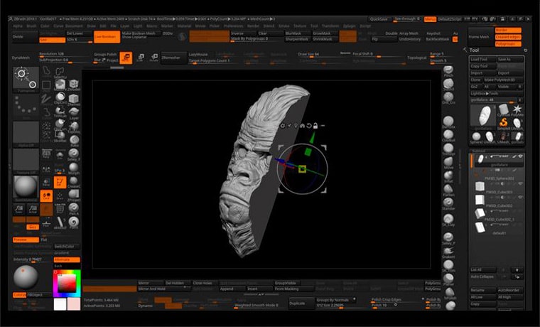 変化球的な使い方ですが、ZBrushのライブブーリアンで断面を表示させることで、その解消が非常に楽になりました。